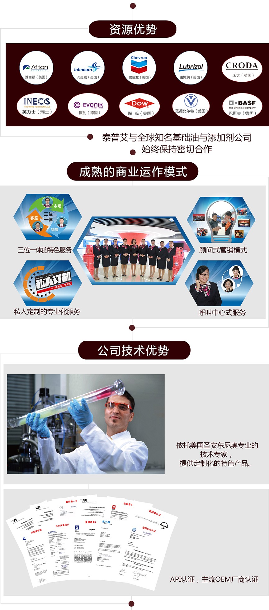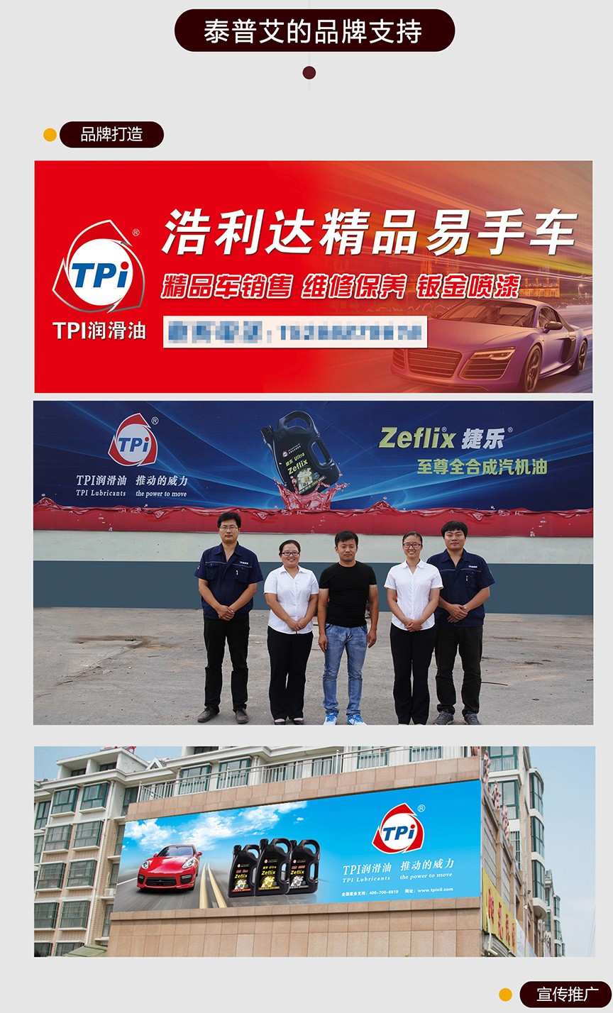 泰普艾車用潤(rùn)滑產(chǎn)品包括樂(lè)威路REVILA系列高級(jí)柴油機(jī)油、白金PLATINUM系列高級(jí)柴油機(jī)油、捷樂(lè)ZEFLIX系列高級(jí)汽油機(jī)油以及涵蓋車輛燃油、動(dòng)力、傳動(dòng)、制動(dòng)、冷卻等各個(gè)系統(tǒng)的輔助油品等,滿足所有車型和全球各種極端氣候條件對(duì)機(jī)油的苛刻要求。