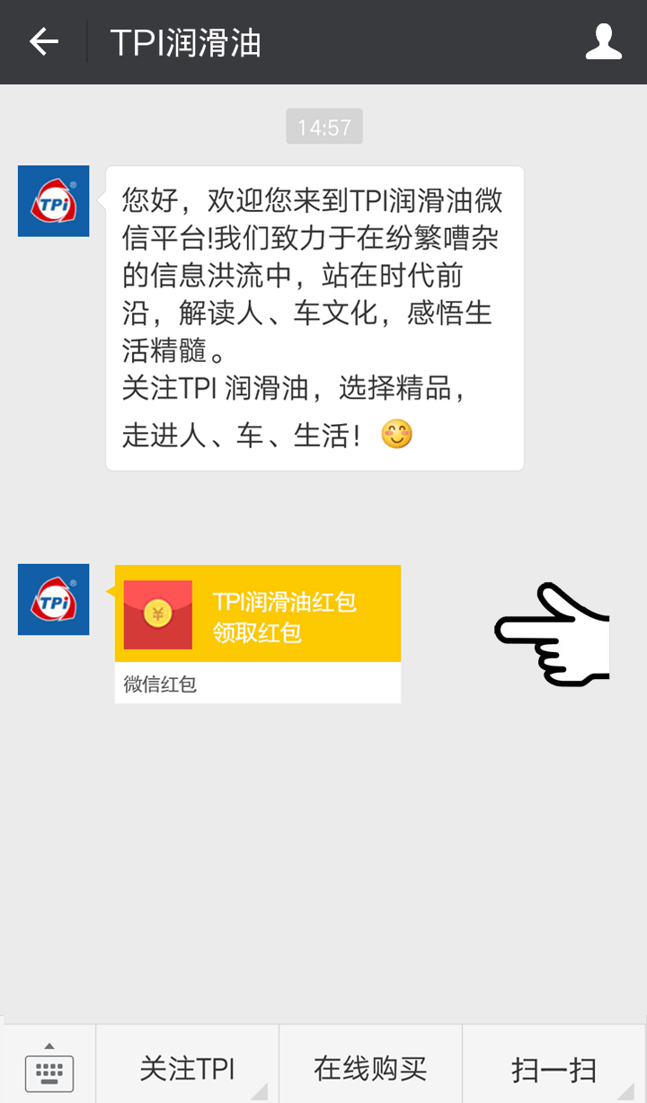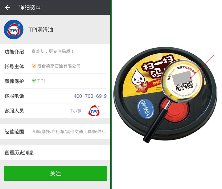 1.關(guān)注泰普艾潤滑油官方微信(tpi4007006919)
