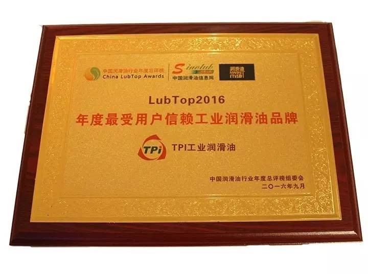 熱烈祝賀TPI工業(yè)潤滑油喜獲Lubtop2016年度最受用戶信賴工業(yè)潤滑油品牌獎項!