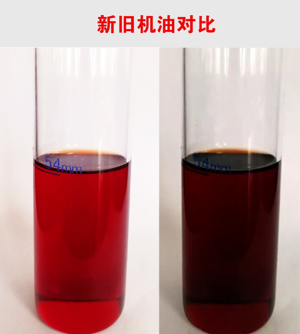 從外觀上,舊機(jī)油顏色加深明顯,但依然能看出玫瑰紅色的痕跡。