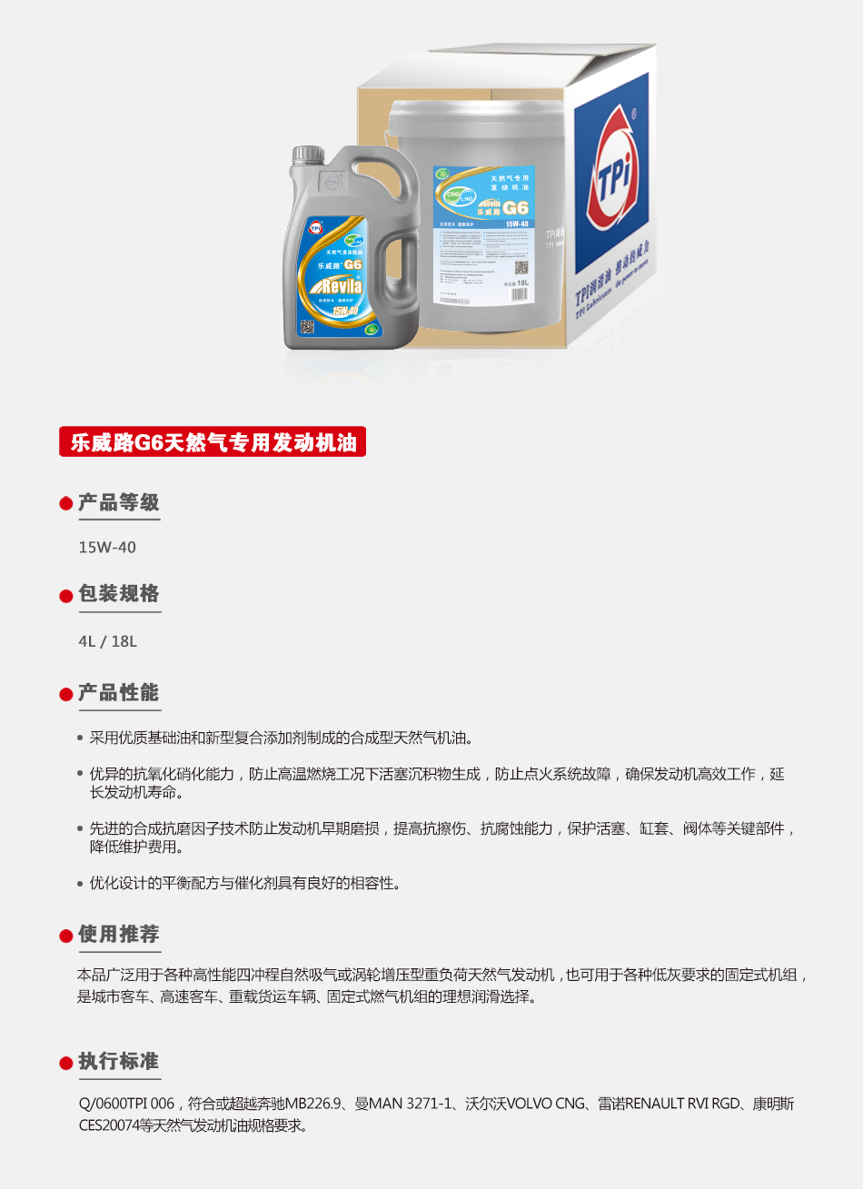 樂威路G6天然氣專用發(fā)動機(jī)油